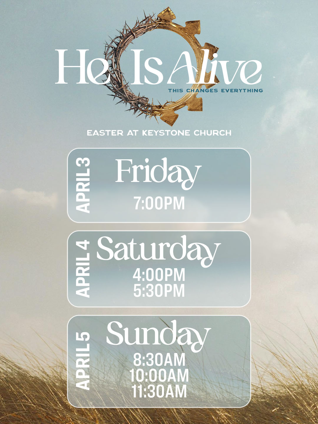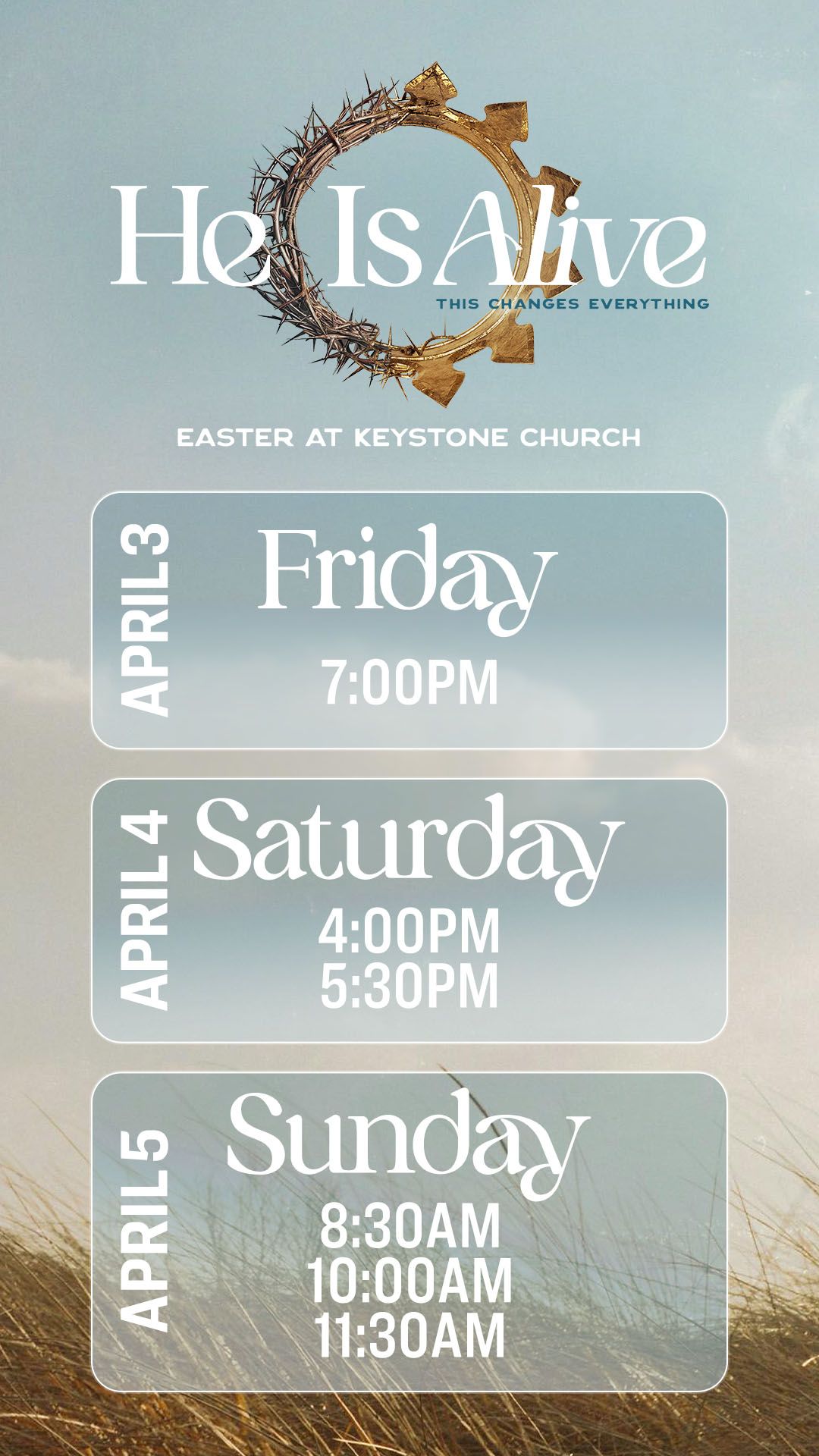 Download our ready-to-use Easter invitation assets and help spread the word about the amazing Easter services happening at Keystone Church! Whether you’re inviting friends, family, or coworkers, these images make it easy to share the joy of Easter and invite others to experience a powerful celebration with us. Simply download the assets, personalize them if needed, and start sharing today! Let’s come together and make this Easter at Keystone an unforgettable experience for everyone!